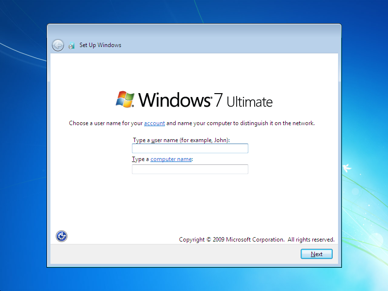 13. Ketik nama pengguna yang Anda inginkan dalam kotak-teks dan klik Next. Nama komputer akan otomatis terisi.